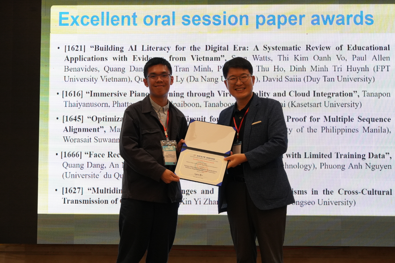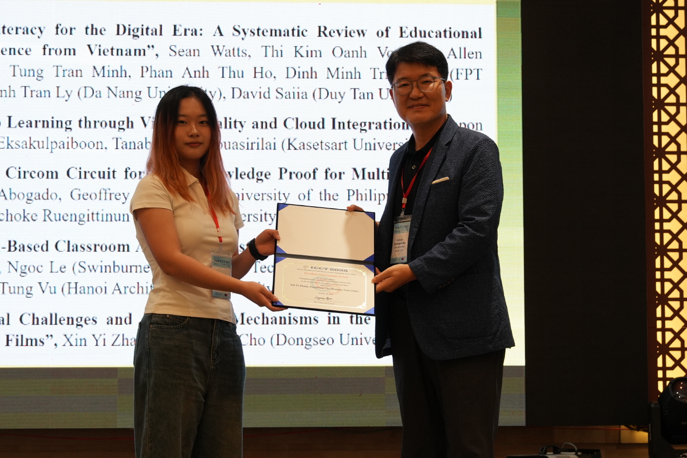 ICCT2024 ICCT2023 ICCT2022 ICCT2019 ICCT2018 2nd ICCT ISCT 2017 ICCT 2017 ISCT 2016 DLT-1 "ICCT2025" Gallery Oct. 23~26, 2025 Da Nang City, Vietnam Video 1. Opening Ceremony 2. Keynote Speech 3. Sessions 4. AAFF 2025 5. AI film Workshop 6. Awarding 7. Banquet 8. Etc