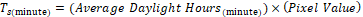 duration of direct sunlight of given geometry and period. We can summarize acquiring process of accumulative shadow map