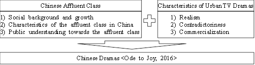 <Ode to Joy, 2016> aired in 2016 caused a lot of social repercussions in China. Audiences have a great interest in the affluent class and polarization between the rich and the poor in the drama. In daily life, ordinary people hardly connect with the affluent class, which is the upper class in modern social stratum. However, TV drama is the media that the public is very easy to reach every day. On basis of social problems, TV dramas usually reproduce character images in order to meet the expectations of the public. Therefore, images of affluent class in the drama not only reflects the understanding of the public but is also the image that the media believes. Targeting at this, this paper examines the characteristics of affluent class in China and public understanding of them by literature research. Additionally, character images of the affluent class in <Ode to Joy, 2016> are analyzed in order to understand mass culture presented by TV dramas in China in the process of cultural reproduction. These results are expected to be baseline data needed to effectively reproduce the images of the affluent class in Chinese dramas depending on social needs or authorial intentions.