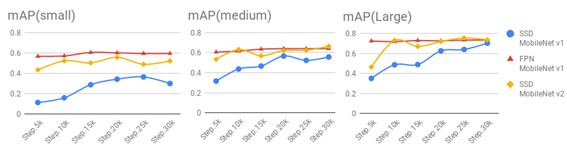 As shown in Fig.5, the FPN MobileNet v1 model also performs well for targets of different sizes. Although the mAP difference between the FPN MobileNet v1 model and the SSD MobileNet v2 model is not significant, it is significantly better than the SSD MobileNet v1 model. However, the small target recognition performance of the FPN MobileNet v1 model is better than the performance of SSD MobileNet v2.