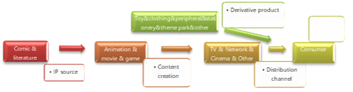 According to the development trend of the animation industry and how to realize it, China has already started to operate the operating mechanism of the industrial chain of animation integration. It is usually divided into three levels: IP core layer, intermediate development layer, and surrounding derived layer.